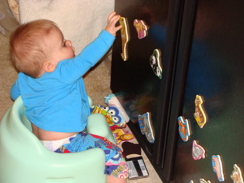 * Eats 2 meals of breastmilk in the morning, has solids for lunch, then 2 meals of breastmilk in the afternoon, followed by 2 meals of solids, and some breastmilk to help her fall asleep and top off her tank for the night!